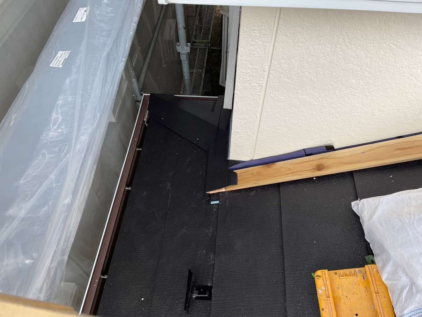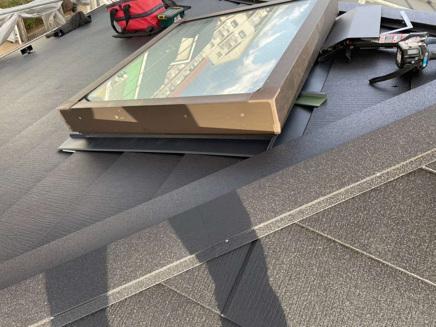 ●今回のお住まいは、下屋・谷・天窓・壁際などが入り組んだ複雑な形状の屋根でした。このような屋根の場合、正確な板金加工や雨仕舞の技術が問われる難易度の高い現場です。