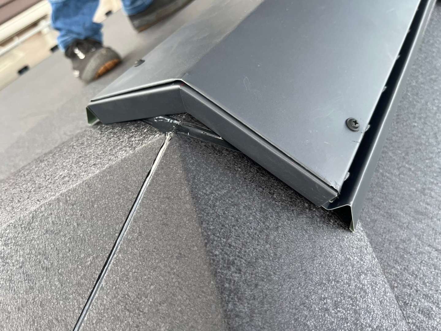 ●鈴恵板金店では、経験豊富な職人が屋根の形状に合わせて現場で1枚1枚板金を加工・施工。細かい部分まで丁寧に仕上げることで、雨漏りリスクのない、美しく安心できる屋根に仕上げることができます。