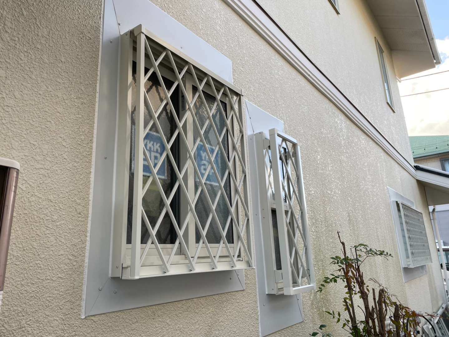 ●神奈川県にて、戸建住宅の窓まわり防犯対策リフォームを行いました。鈴惠板金店では、YKK AP製の可動式面格子とアルミ製庇(ひさし)を使用し、防犯性と快適性、そして外観の美しさを兼ね備えた施工を心がけております。