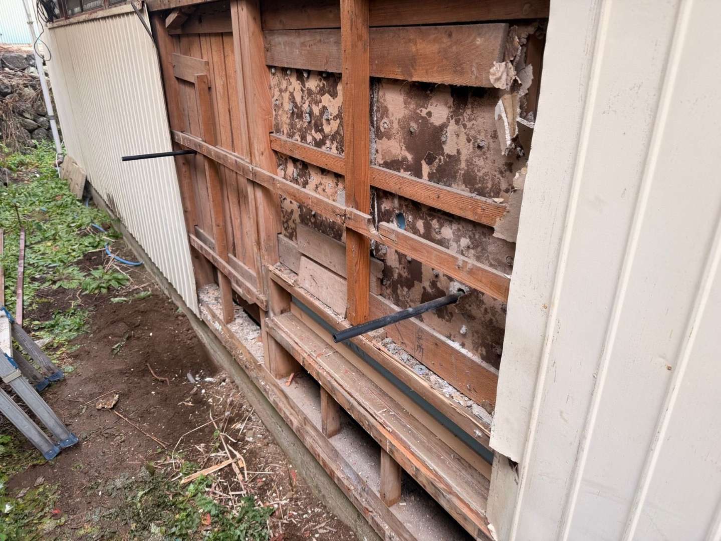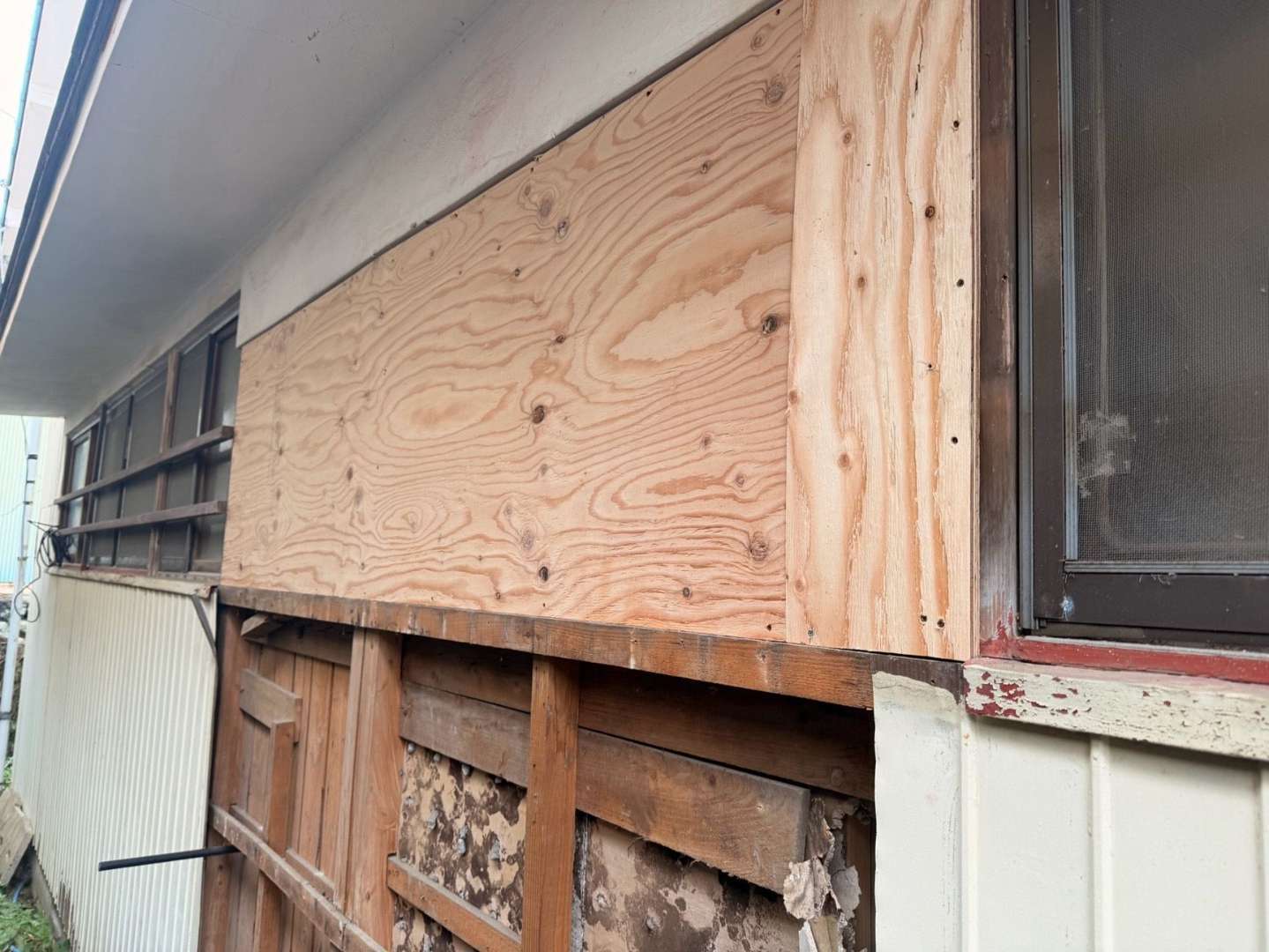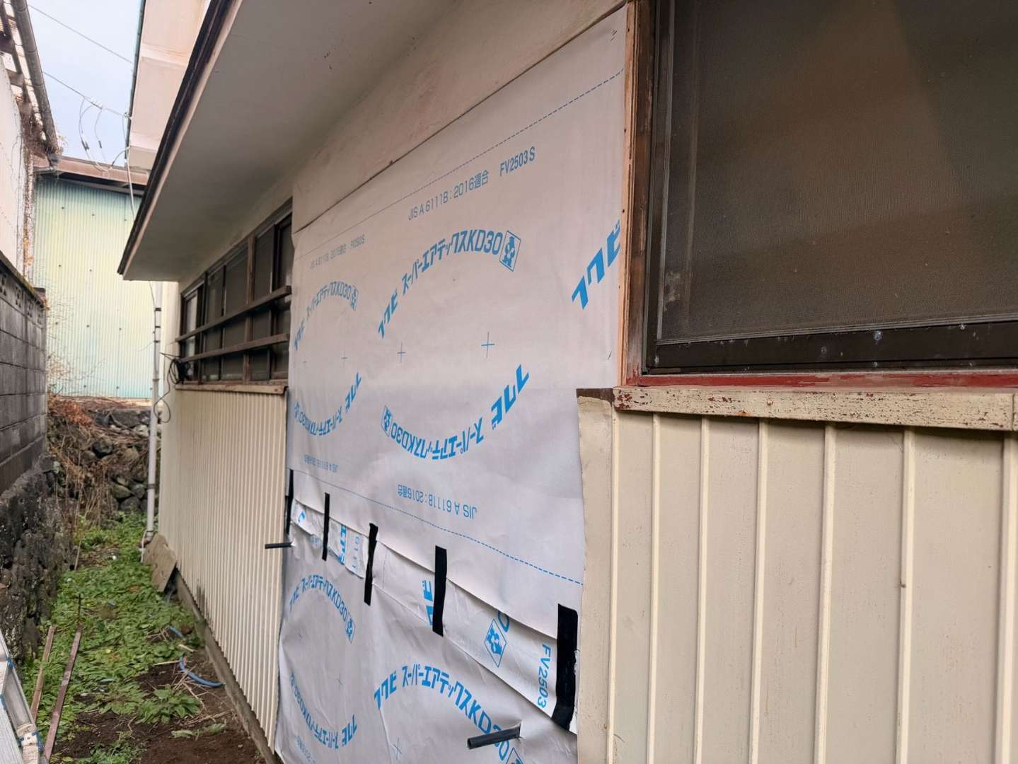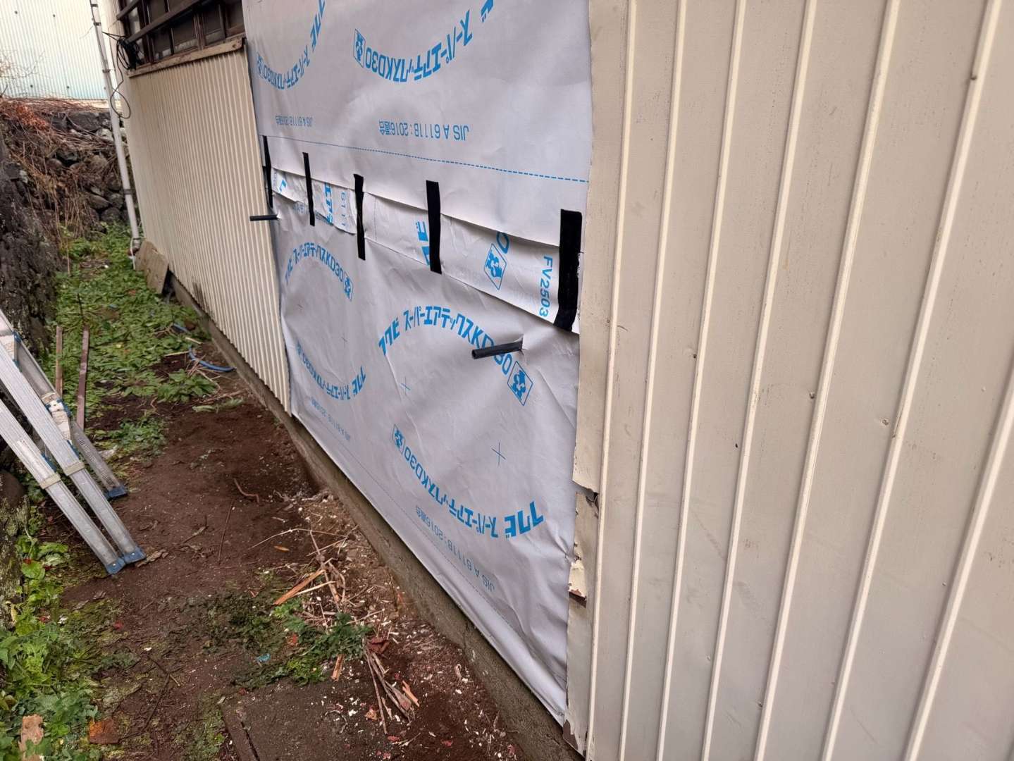 今回は既存の古い外壁を丁寧に撤去し、新しく「プリント鋼板」を張る工事を行いました。