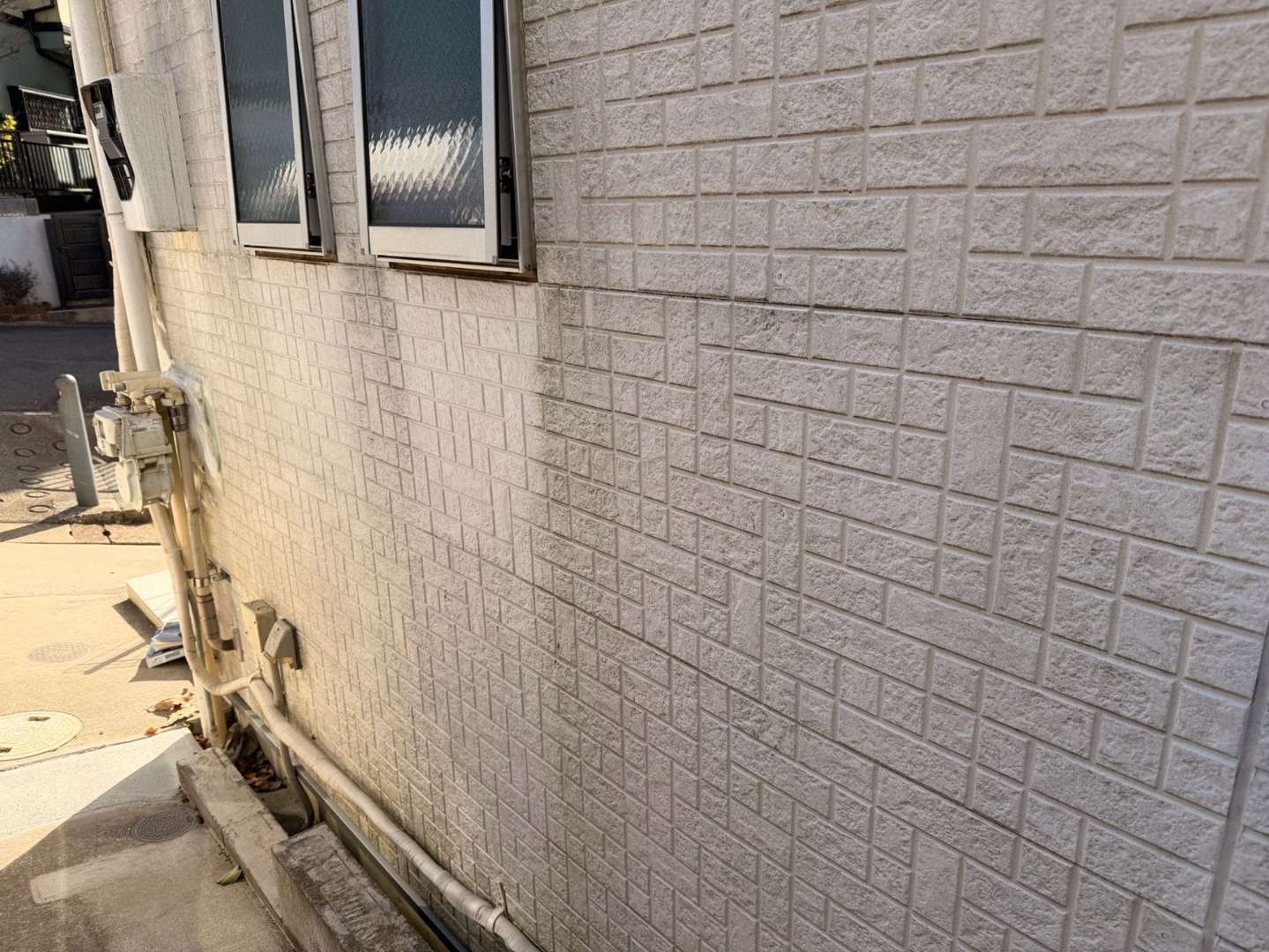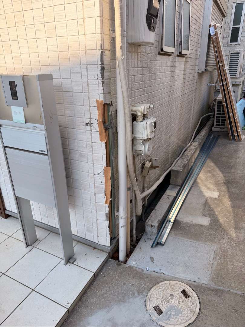 外壁の一部だけでも、玄関周りが色あせていると建物全体が古びた印象を与えてしまいます。また、ひび割れを放置すると雨水が侵入し、建物の下地を傷める原因となるため、早めのメンテナンスが必要です。